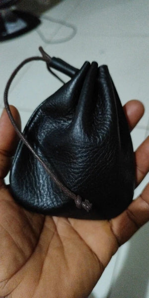 This coin purse's compact and portable design makes it easy to carry all your essentials wherever you go. Its secure drawstring closure ensures everything stays safe, while the genuine leather adds a touch of elegance to your everyday routine.